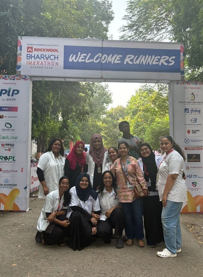 Students actively participated in providing physiotherapy support during the ROCKWOOL Marathon held on 12 October 2025 under the guidance of Dr. Nikita Manjanwal. The activity offered students valuable hands-on experience in the assessment and management of sports-related conditions, including injury prevention, immediate care, and recovery strategies for participants. Their involvement enhanced practical clinical exposure, promoted experiential learning, and significantly contributed to the overall success and smooth conduct of the event.