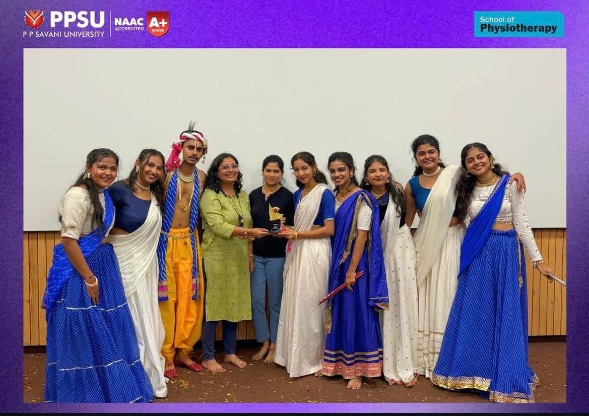 The School of Physiotherapy, P P Savani University, achieved First Place in the Janmashtami Celebration 2025 Dance Competition. The performance showcased cultural excellence, teamwork, and student creativity, bringing pride to the department. The achievement reflects active student participation in co-curricular activities and the institution’s commitment to holistic development.